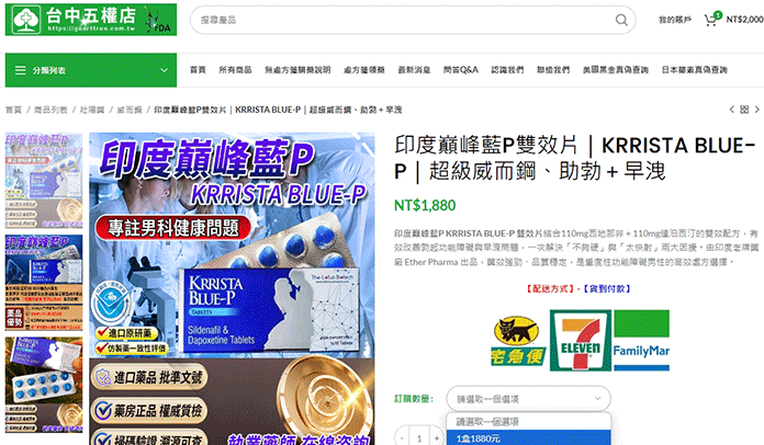 巔峰藍P雙效片(KRRISTA BLUE-P)是由印度 Ether Pharma 製藥公司推出的雙效壯陽藥,結合 110mg 西地那非(Viagra 同成分)與 110mg 達泊西汀(Priligy 同成分),同時治療勃起功能障礙(ED)與早發性射精(PE)。由於藥效強勁,深受中重度性功能障礙男性青睞,但也因需求高、市面假貨流竄,使得「正品巔峰藍P去哪裡買到?」成為最常見問題。
