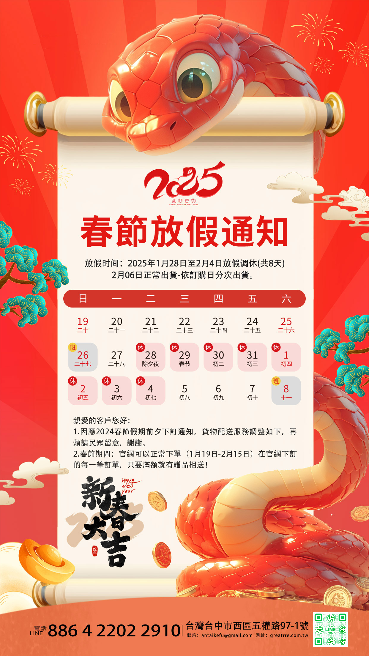 • 統一配送日期:春節期間的訂單將於 2025年2月6日 起陸續出貨。