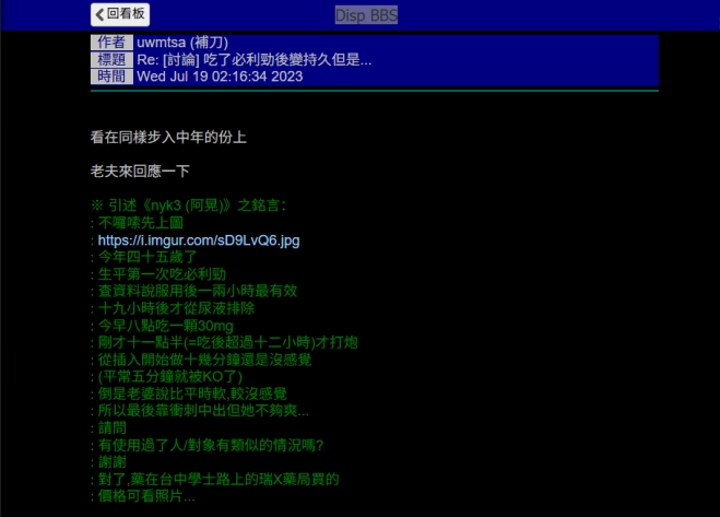 有民眾向藥商投訴,指在台南地區一家西藥房買來的必利勁「不持久」,另有人向警方報案,指南北都有情趣用品店打著來就送必利勁,結果吞了還是「不持久」,害怕吃到偽藥傷了「小弟弟」。