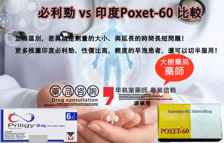 | 比較項目 | 原廠必利勁(Priligy) | 印度版 Poxet-60(Sunrise) |