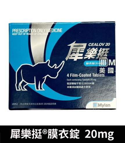 犀樂挺 20mg 膜衣錠 Cealov 1盒4粒 | 犀利士學名藥 單效助勃