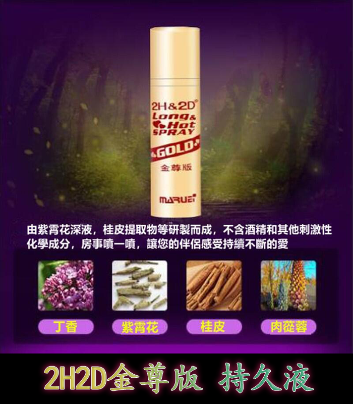 2H2D金尊版持久液 是專為男性設計的高效外用持久產品,旨在延長性愛時間,提升持久力,讓您在親密時刻展現最佳狀態。這款持久液採用多種天然成分,專門針對男性敏感度問題設計,能有效延遲射精,增強性愛品質,讓您和伴侶享受更長久、更滿足的親密時光。