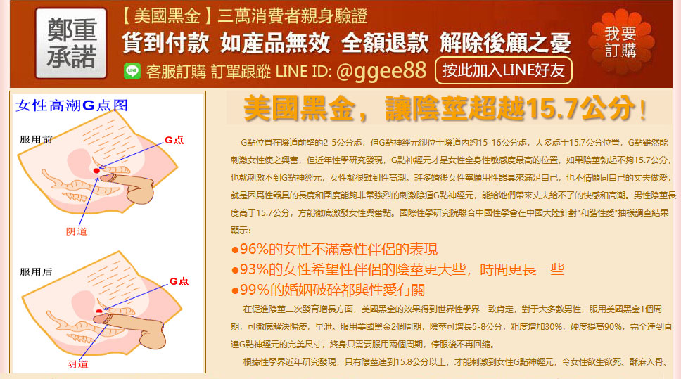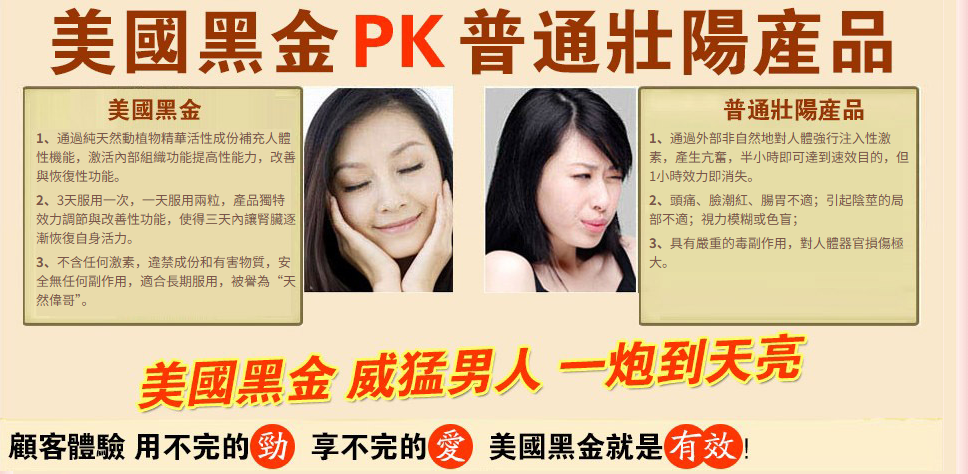- 美國黑金可以在服用半小時內讓你快速勃起,不在是一個軟男子!長期服用更有保養作用:
