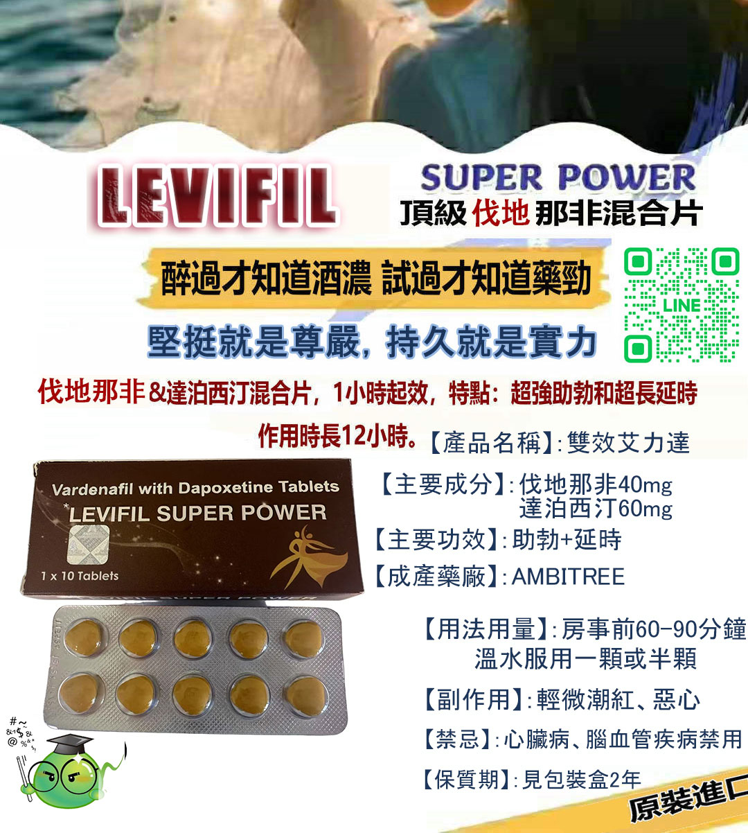 雙效艾力達 Levifil Super Power 是結合「助勃」與「延時」雙重效果的進階壯陽藥物,由印度 AMBITREE 製藥公司研發生產。產品專為同時面臨勃起功能障礙(ED)與早洩困擾的男性設計,能在性刺激下迅速發揮效果,是現代男性提升性生活品質的高效選擇。