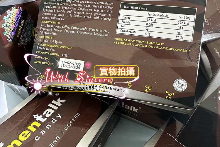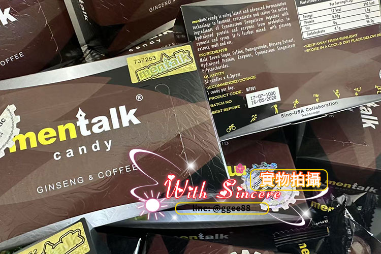 汗馬黑糖mentalk,它的主要成分有:鎖陽、麥芽、咖啡、石榴多酚、人參皂苷、水解蛋白、水果酵素等珍稀草本植物之精華濃縮而成,不含任何激烈與刺激性添加劑。藥效真正達到吃一顆硬三天!馬來西亞正品原廠進口。放心購買!