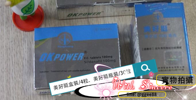 - 每盒含 4 錠 美好挺膜衣錠 OKPOWER,每錠含 100mg Sildenafil