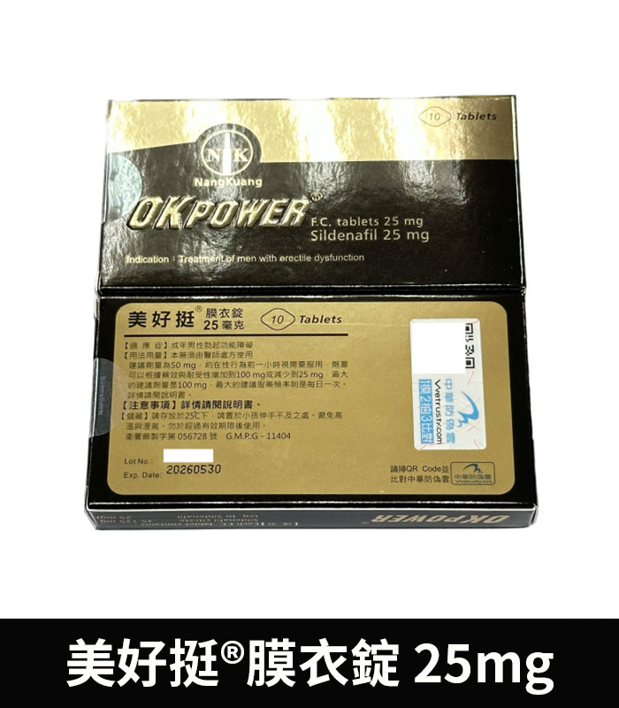 美好挺 OKPOWER 25mg 膜衣錠|輕劑量 Sildenafil 10顆裝