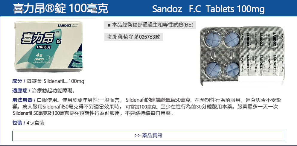 • 如出現持續勃起超過4小時(陰莖疼痛),請立即就醫