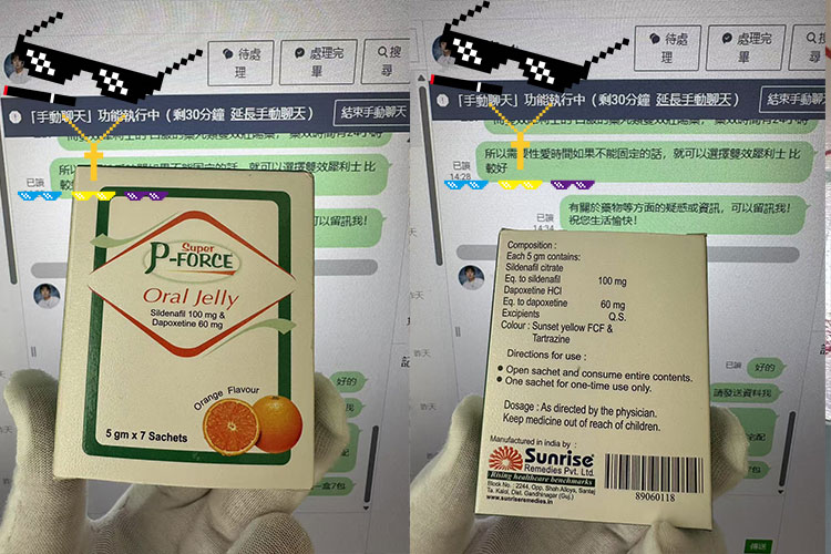 果凍威而鋼P-Force Oral Jelly 具有與威而鋼片劑相同的成分和性質。由於其果凍形式,果凍吸收更快,使用後20-30分鐘起效,效果持續4-6小時。
