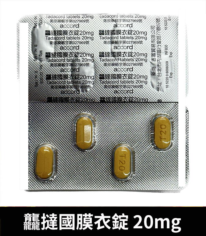 龘撻國膜衣錠 Tadacord 20mg 是針對男性勃起功能障礙的強效助勃藥物,提供快速且穩定的勃起效果,幫助您在性愛中恢復自信,讓每一次親密接觸都更加持久滿足。
