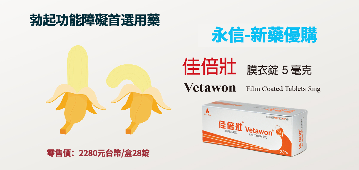 首頁 商品列表 壯陽藥 犀利士 永信 Vetawon 佳倍壯 5mg 膜衣錠|犀利士學名藥 28粒/盒