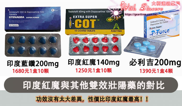 從表格可見,印度紅魔的劑量更高、價格更低,適合追求高性價比的消費者。若想了解如何選擇適合自己的雙效藥,可點擊下面進入我們大樹藥局官網。